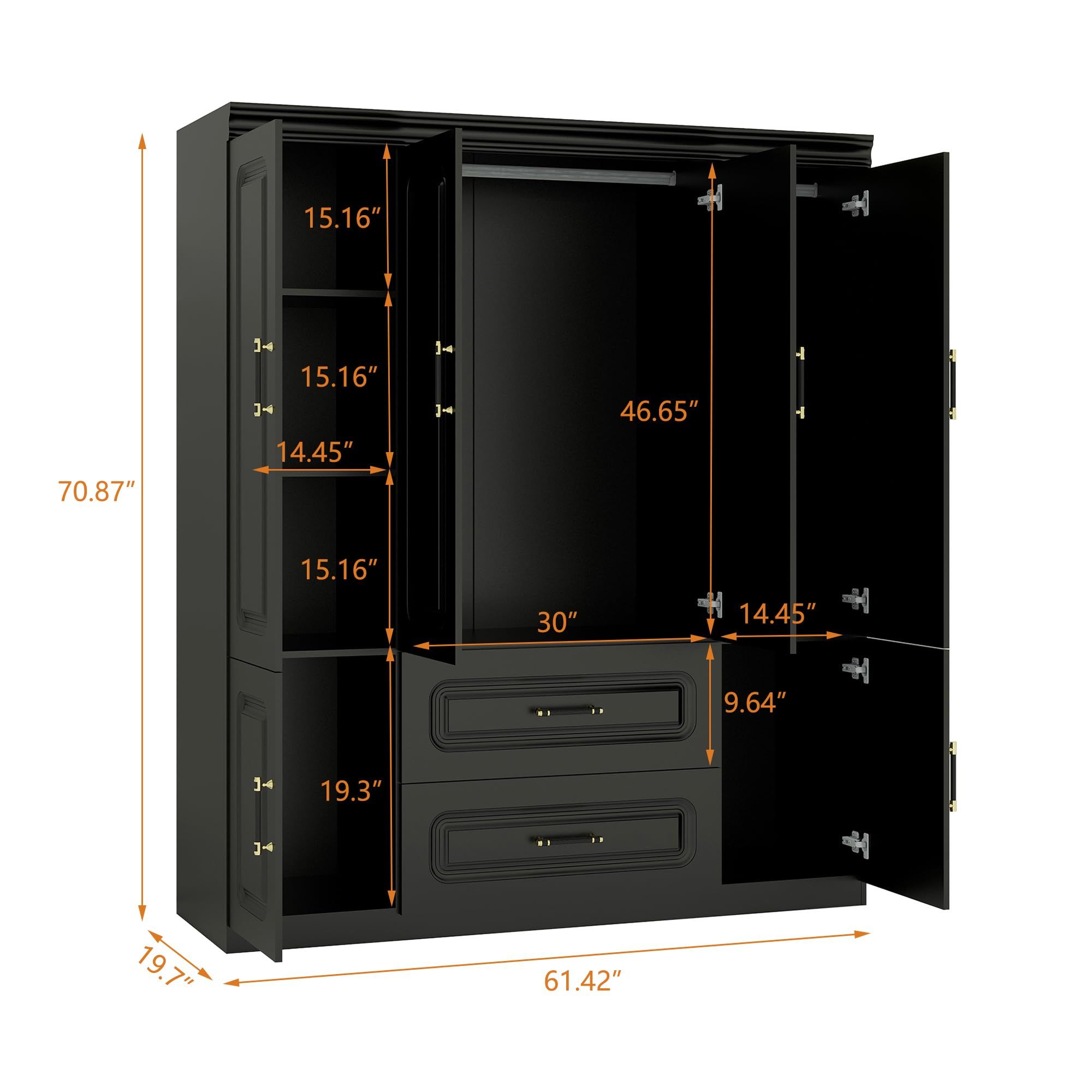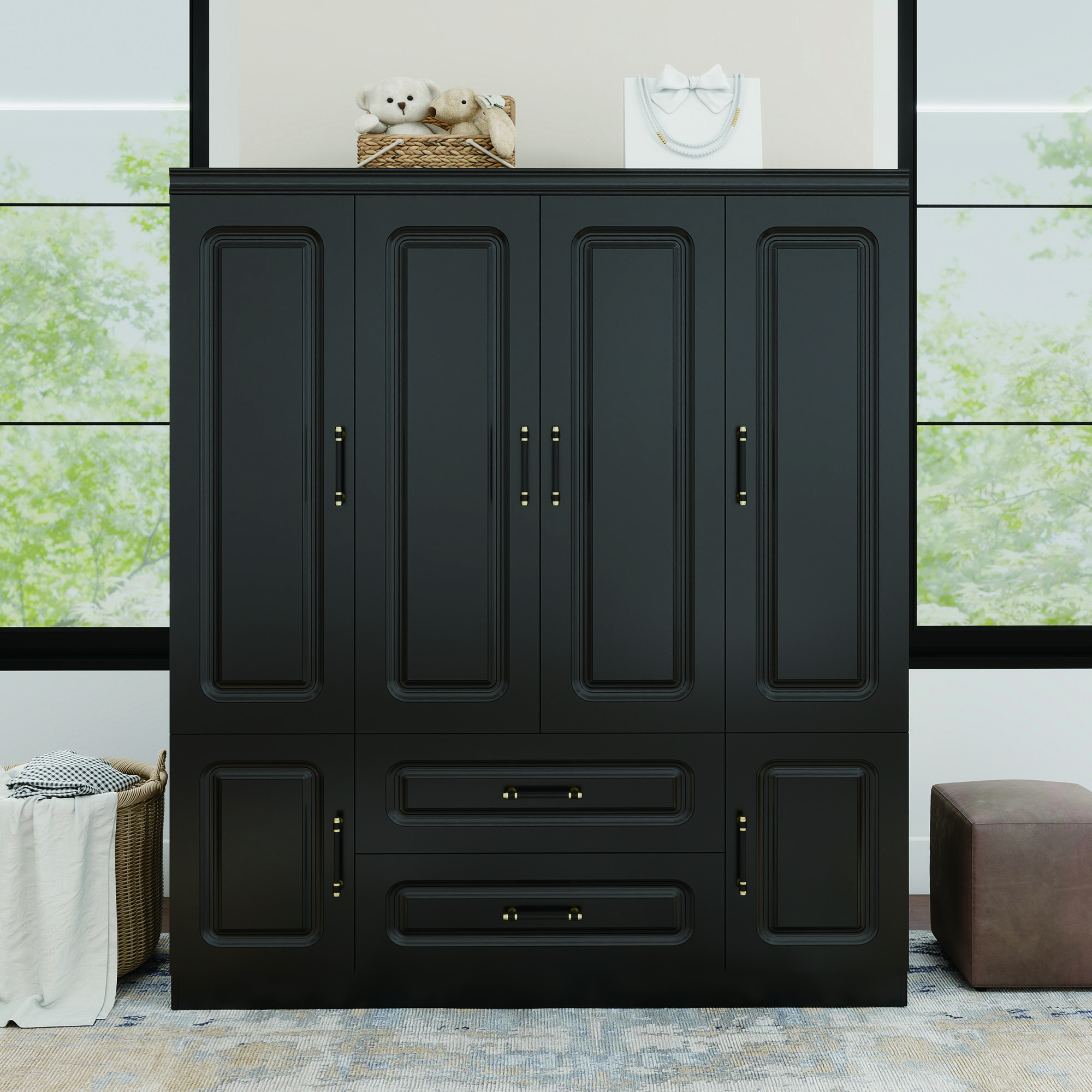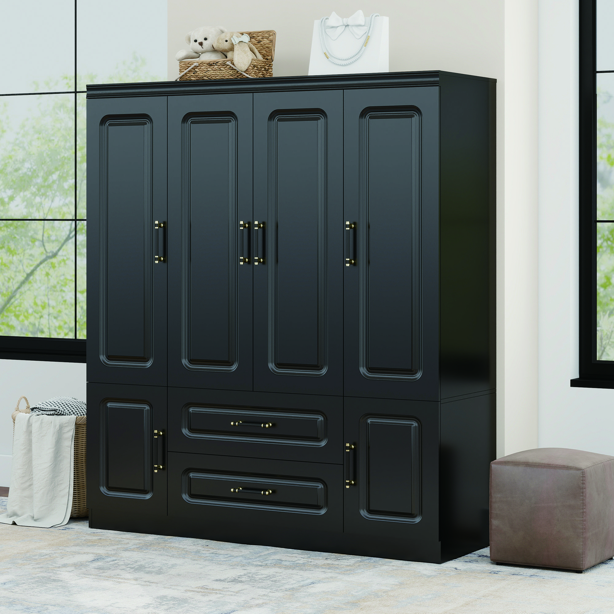 Livelylodge Modern Black Wardrobe with Large Storage Capacity ��� 4 Doors, 2 Drawers Livelylodge Modern Black Wardrobe with Large Storage Capacity ��� 4 Doors, 2 Drawers Livelylodge Modern Black Wardrobe with Large Storage Capacity ��� 4 Doors, 2 Drawers