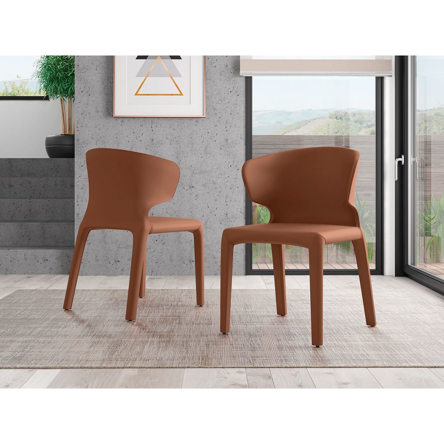Clean lines accompany this collection's leather-upholstered metal frame and contoured back; marrying functional comfort with a mid-century sophistication. Elevate your dining space with the supple leather luxury of this dining chair. This effortlessly chic dining chair set offers a low; wrapped back with a gently cushioned seat to provide premium comfort and support; all while creating an upscale yet casual feel to your dining room; kitchen; or lounge space. The mid-century modern design radiates a versatility fitting multiple decor styles from upscale coastal; and contemporary farmhouse; to urban industrial and eye-catching glam decor.