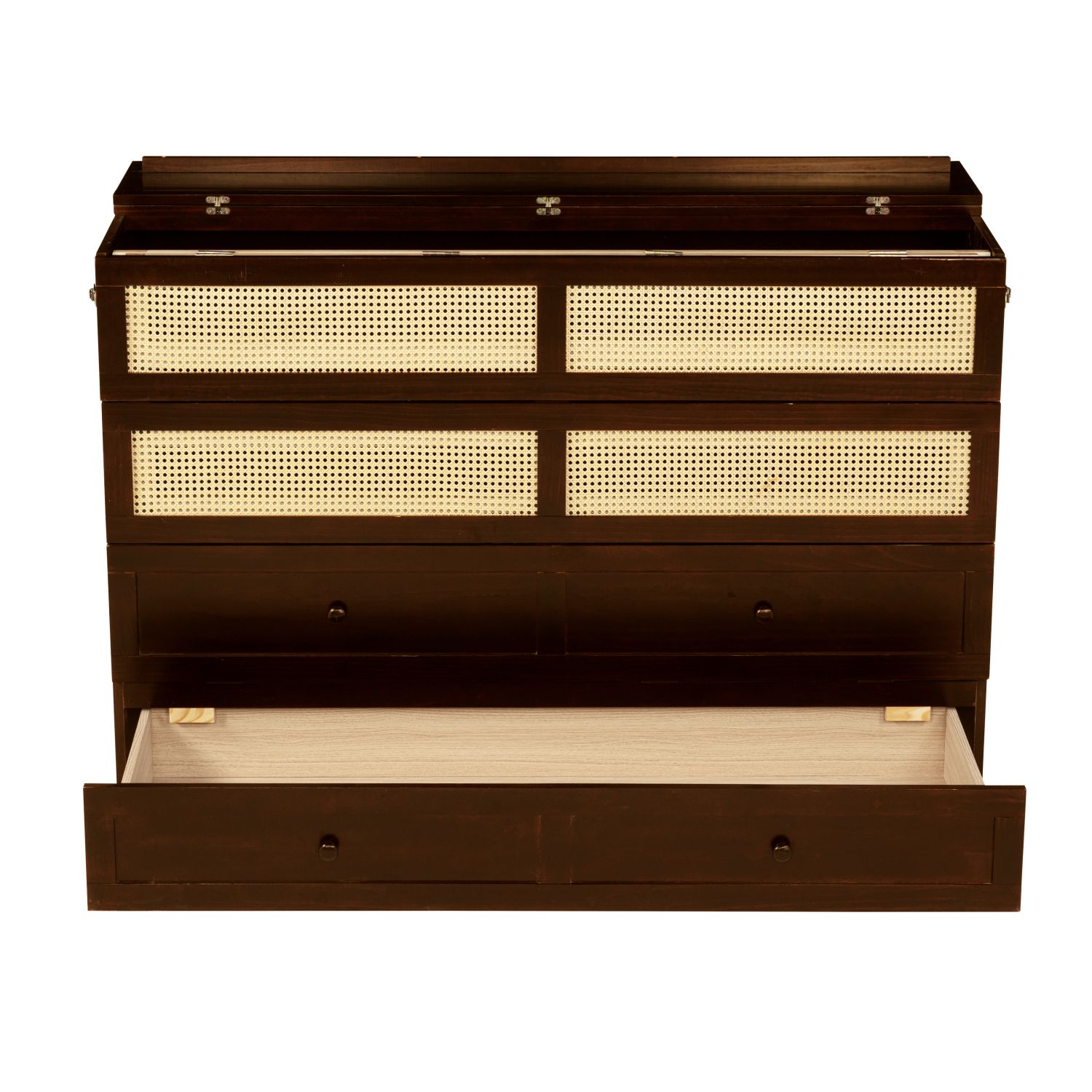 [Unique Rattan Decoration and Storage Drawer]The distinctive rattan decoration panel of this cabinet bed harmoniously infuse your bedroom décor with a vintage attraction and fostering a cozy yet fashionable ambiance. Moreover, the bed is an example of superior craftsmanship and long-lasting materials further elevating its overall aesthetic appeal.The large drawer with 4 rolling wheels allows you to easily store clothes,bedding and daily items .