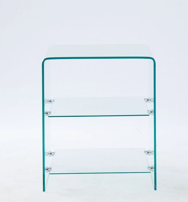 Tempered Clear Bent Glass SideTable, Transparent End Table, Sofa tablethis multi-purpose table be used to hold your snacks, coffee, books and decor items, it can also be used for displays at schools, trade shows, corporate events, businesses, restaurants, and retail establishments. Applicable room: Suitable for home restaurant kitchen dining Room , living room, farmhouse ,office,outdoor.Can be stacking desks, learning tables, game tables, picnic tables,couch desks. Outdoor end table:Besides used as room side tables, you can use it outdoor. This small table is made of premium tempered glass,which is waterproof and durable Description: Easy to clean: Carpet colors show right through without any tint, nice effect,wipe it down easily to get fingerprints and messes off. gives it a very quality look and feel,be focal point of your living room. Easy to install: Item comes well packaged and protected, no assembly required. no assembly required. Very safe: Safe in daily use,rounded edges and corners,smooth and beautiful,safe for children.
