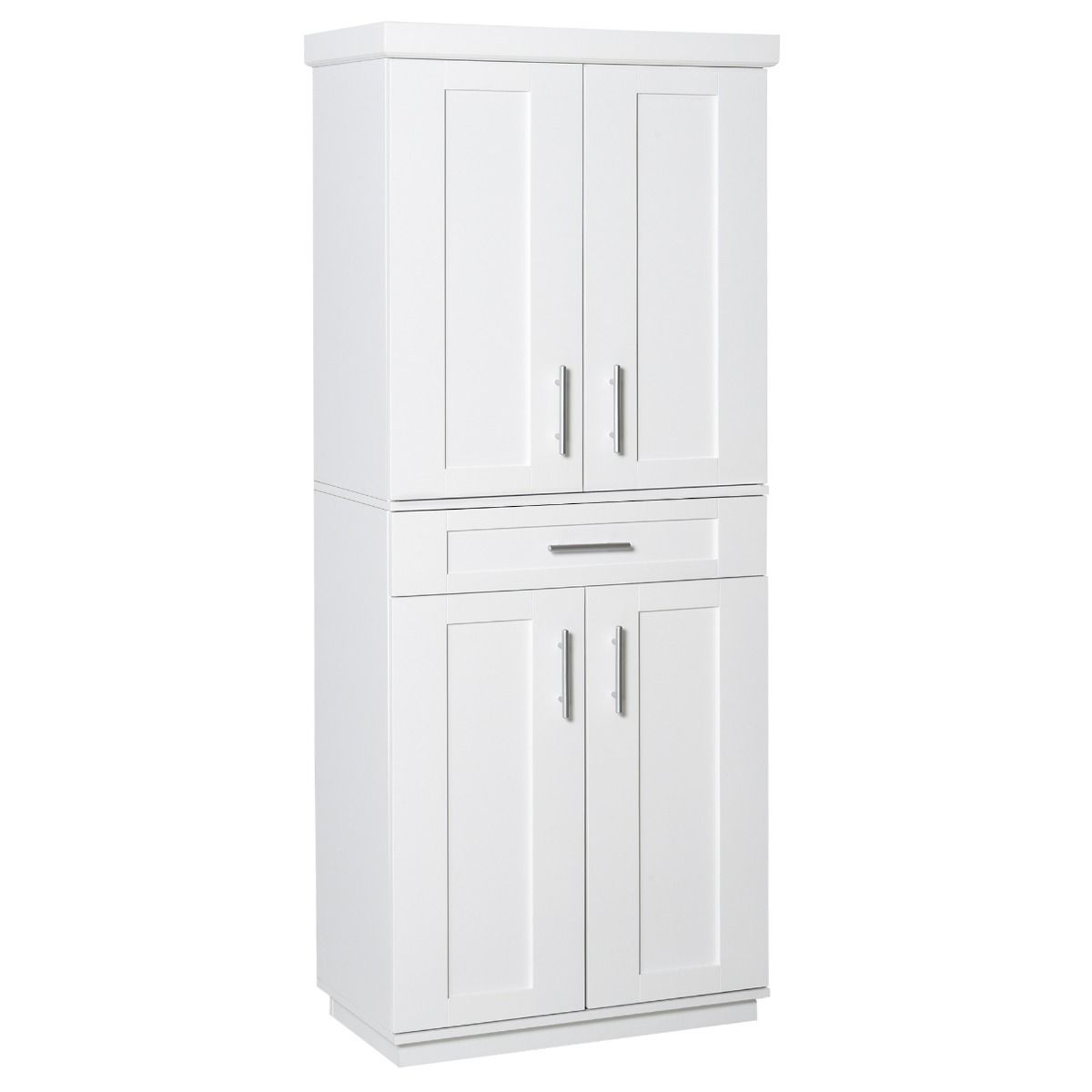 HOMCOM Modern Kitchen Pantry Cabinet Storage with with 4 Doors, Drawer and 3 Adjustable Shelves for Dining Room, White| HOMCOM Modern Kitchen Pantry Cabinet Storage with with 4 Doors, Drawer and 3 Adjustable Shelves for Dining Room, White| HOMCOM Modern Kitchen Pantry Cabinet Storage with with 4 Doors, Drawer and 3 Adjustable Shelves for Dining Room, White|