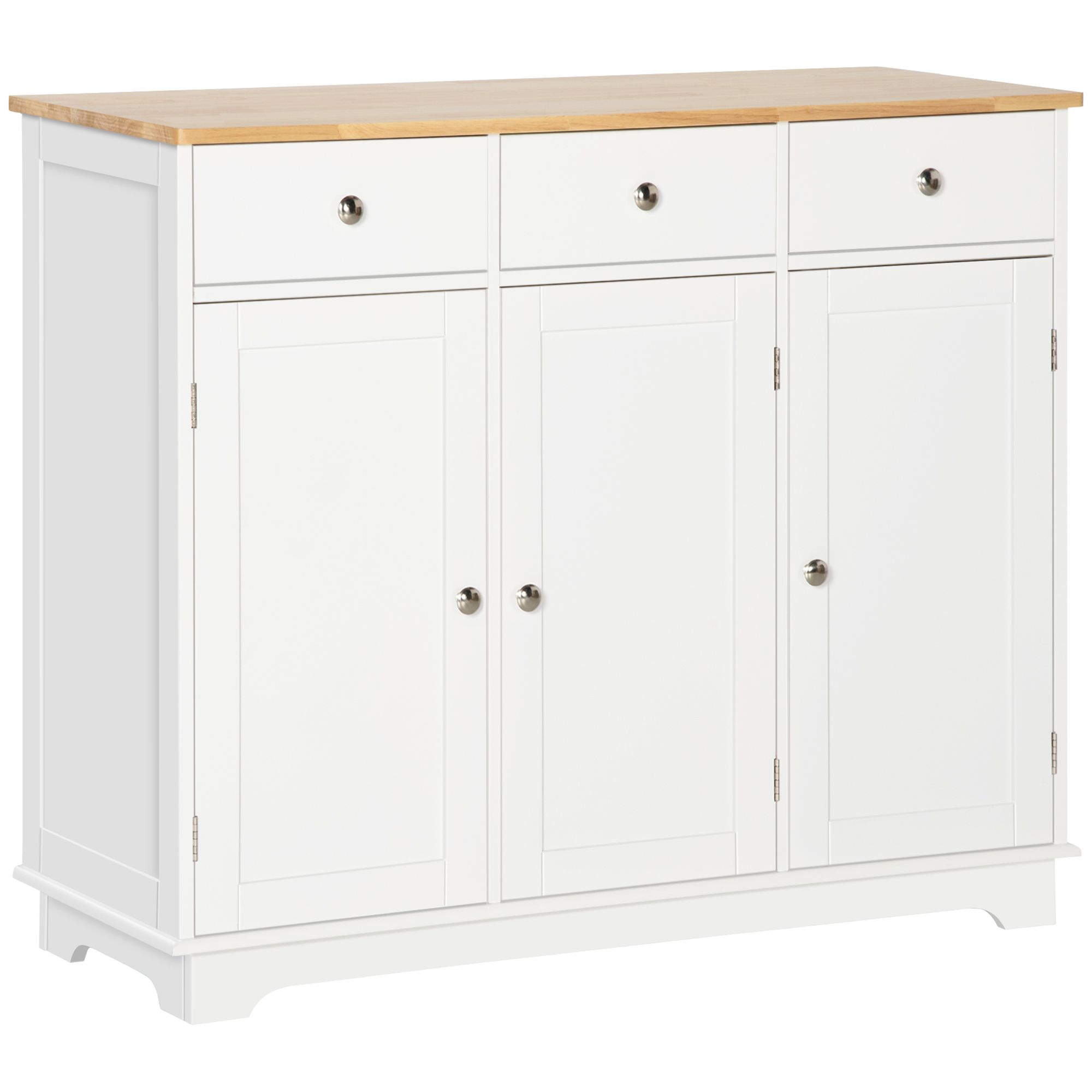 Home > HOMCOM Sideboard Buffet Cabinet, 3-Doors Kitchen Cabinet, Coffee Bar Storage with 3 Drawers, Adjustable Shelf for Living Room and Hallway, White
